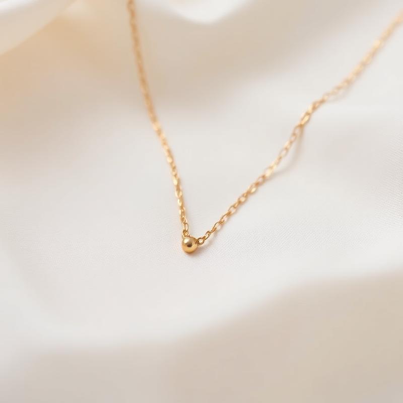 A delicate gold chain with a single bead pendant. Perfect for everyday elegance, this minimalist piece adds a touch of sophistication to any outfit.